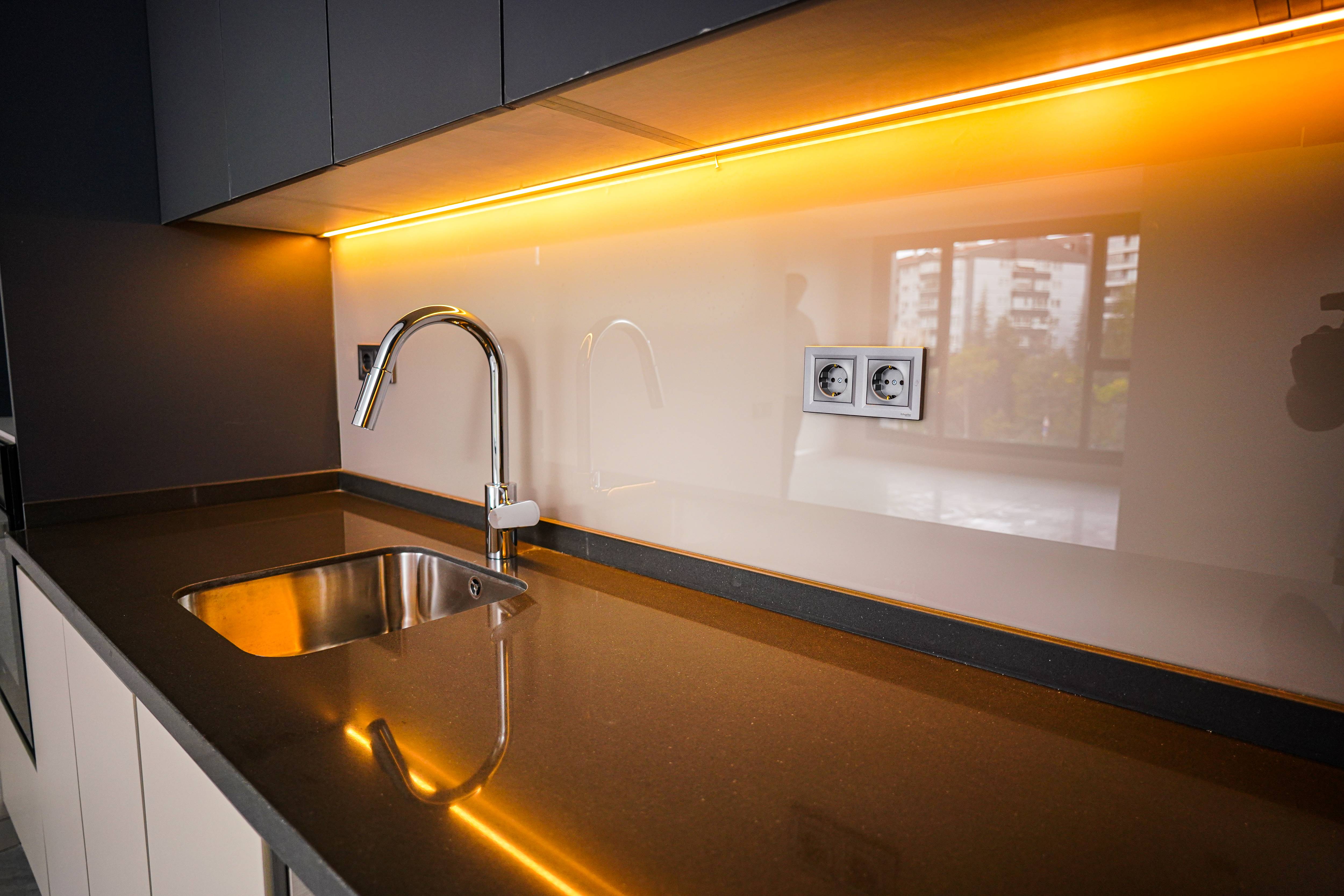 •Spot ve led aydınlatmalı mutfak